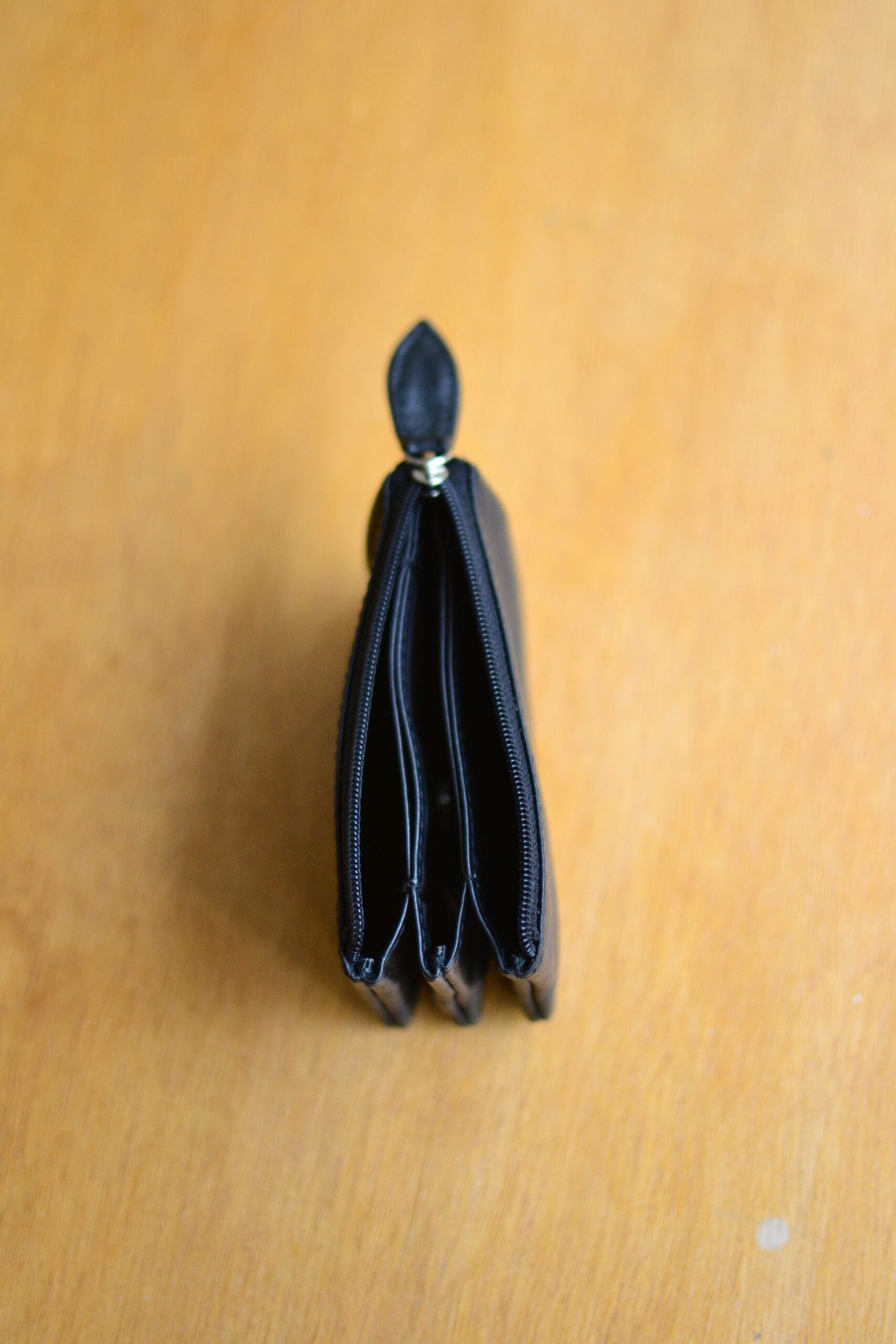 Δερμάτινο, μικρό πορτοφολάκι με φερμουάρ. Διαθέτει τρεις κύριες θέσεις και δύο μικρότερες.