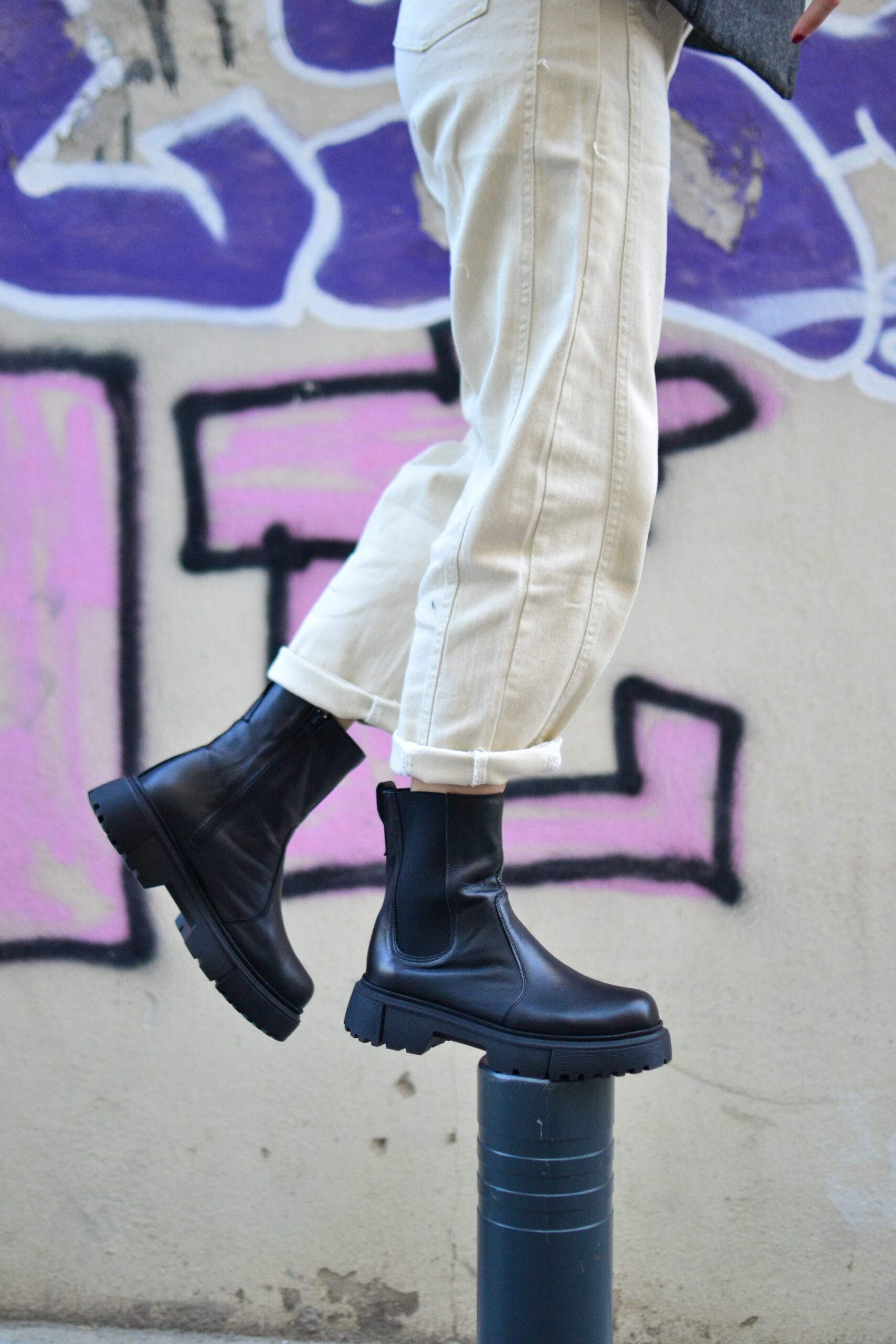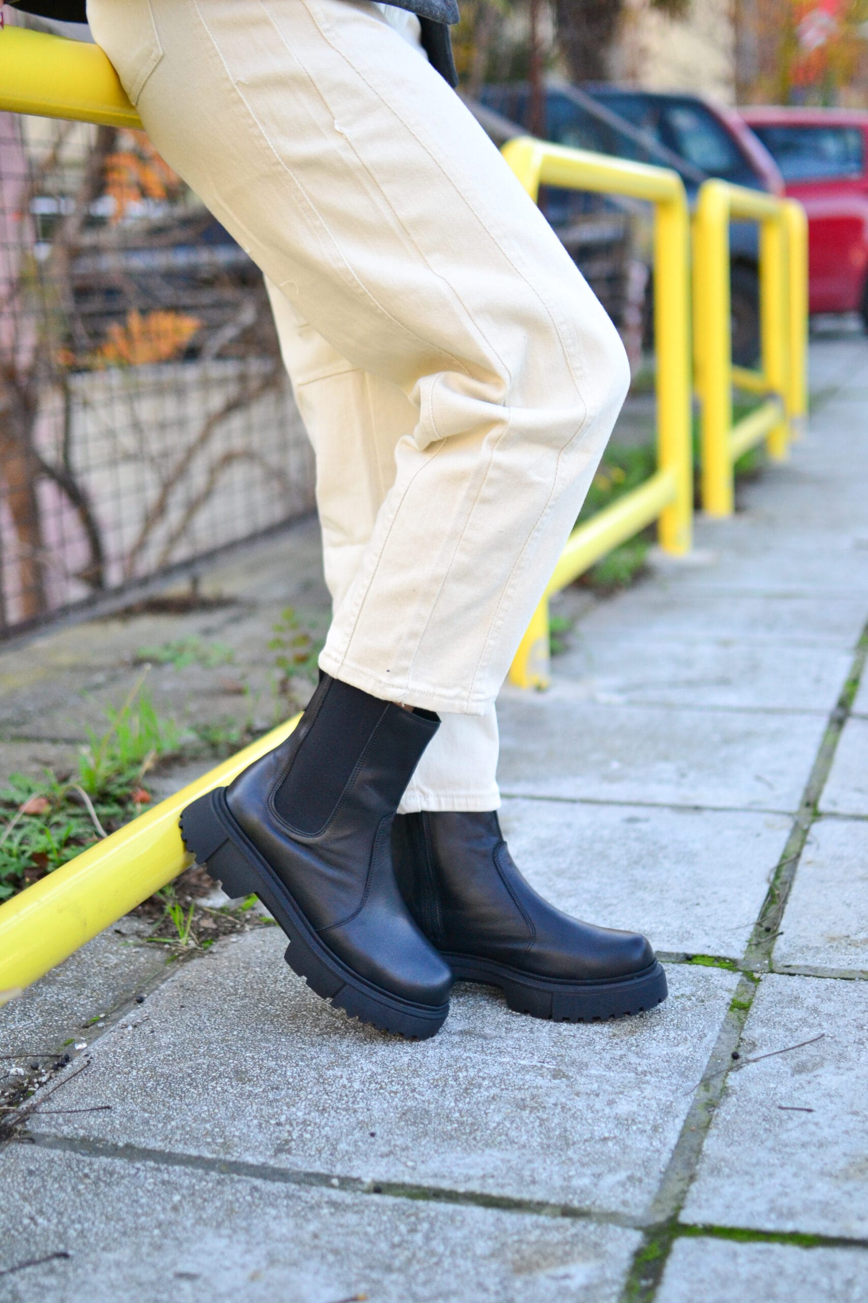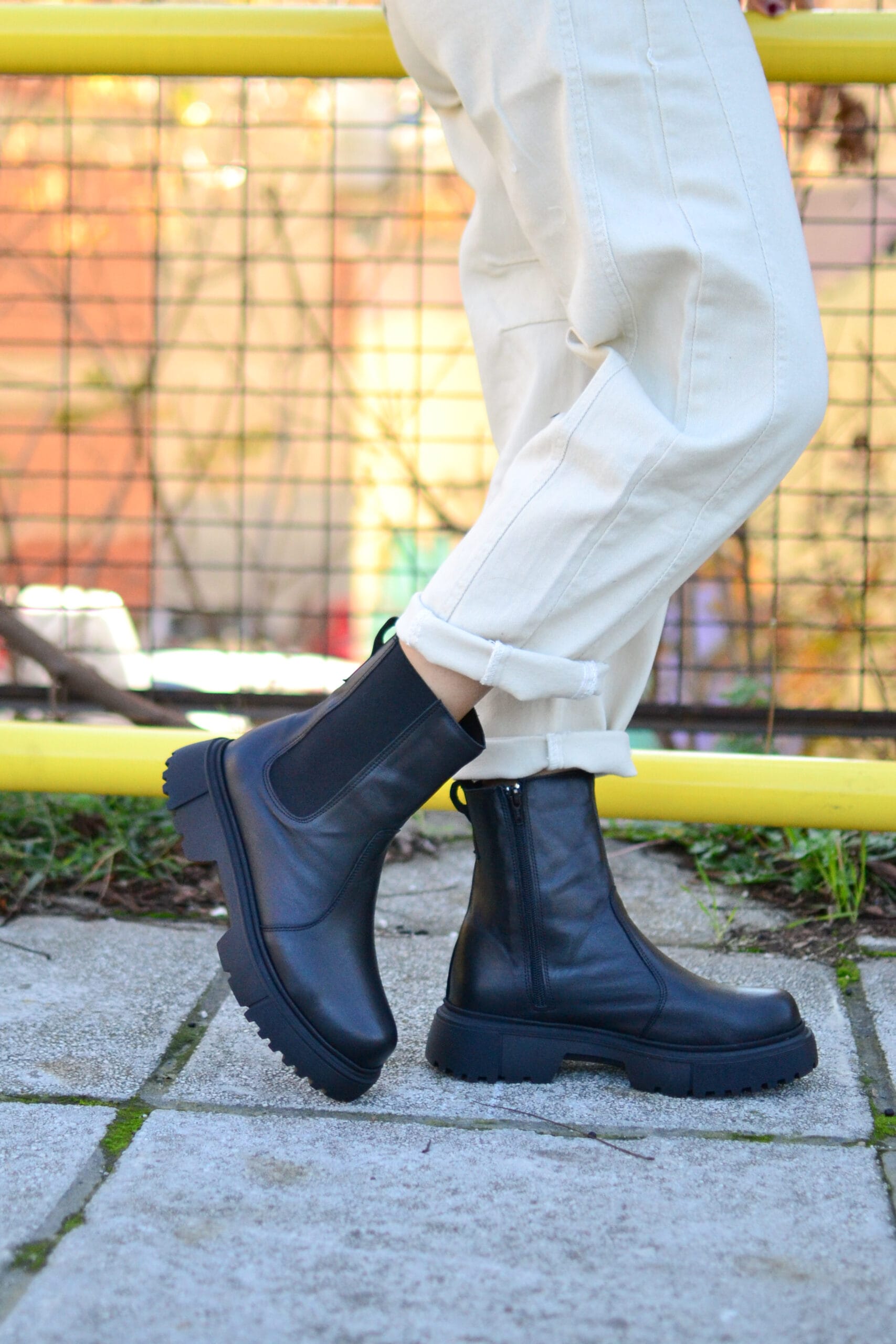 Μποτάκια με λάστιχο στην έξω πλευρά και φερμουάρ στην εσωτερική. Διαθέτουν σόλα από θερμολάστιχο.