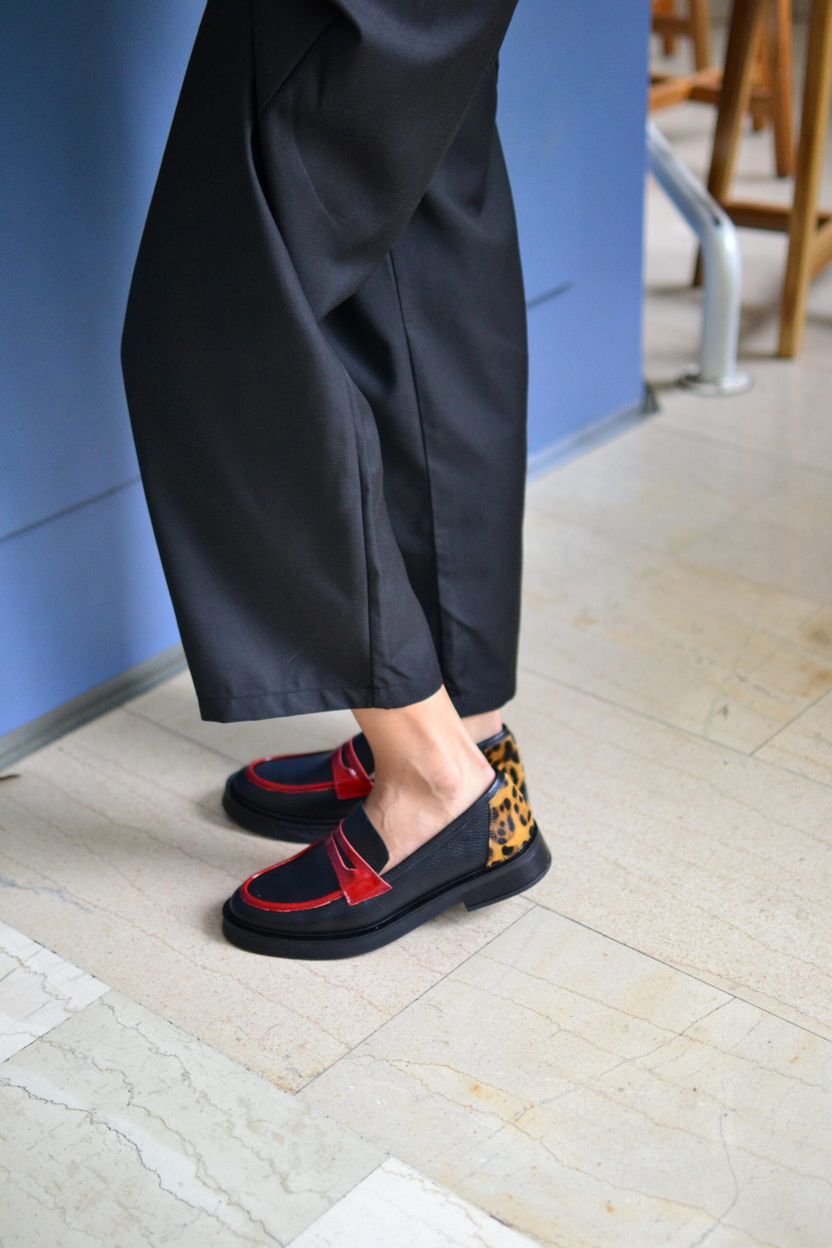 Δερμάτινα loafers με λεπτομέρειες από λουστρίν και animal print. Διαθέτουν σόλα από θερμολάστιχο.