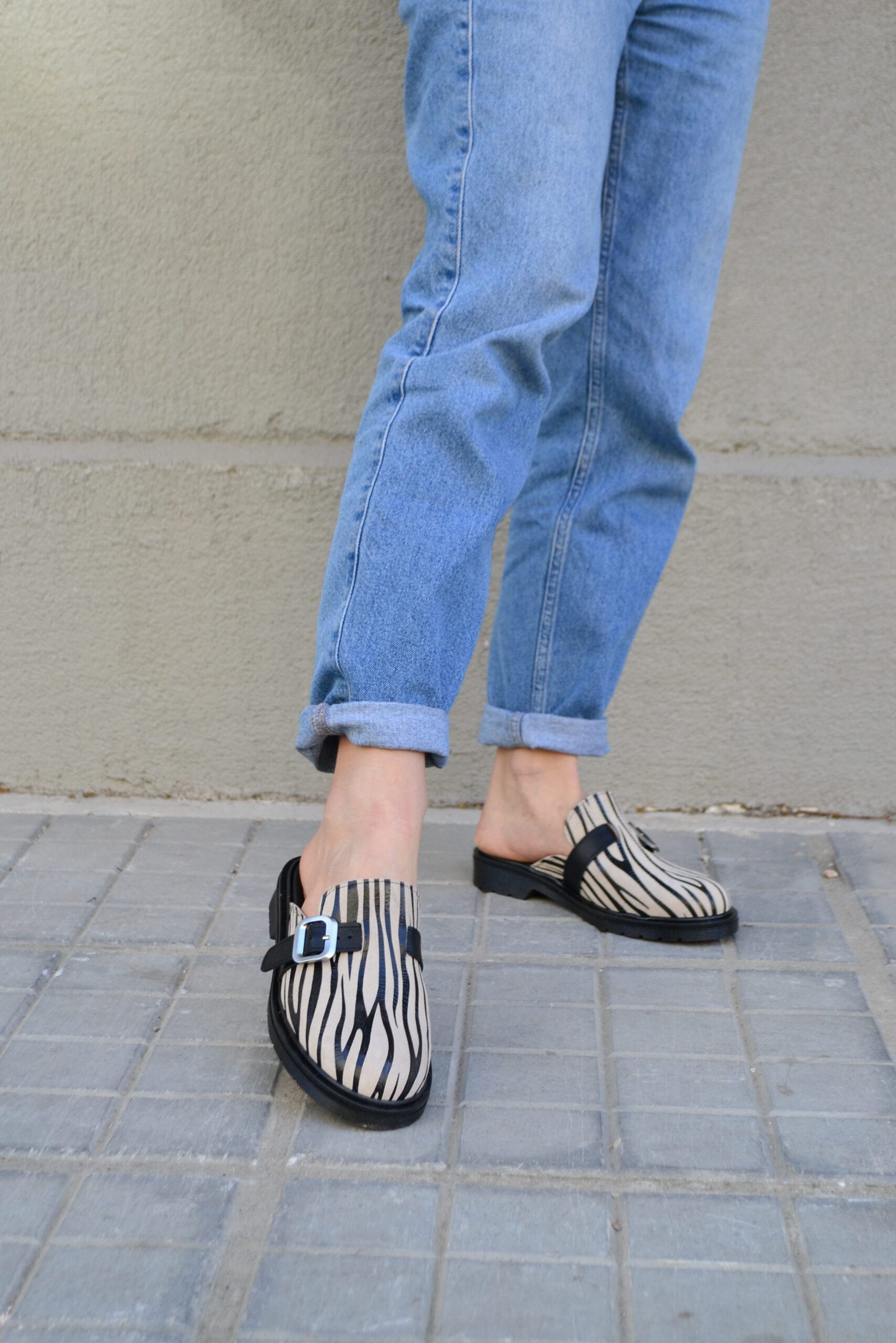 Δερμάτινα clogs με διακοσμητική φάσα. Διαθέτουν πέλμα από θερμολάστιχο.